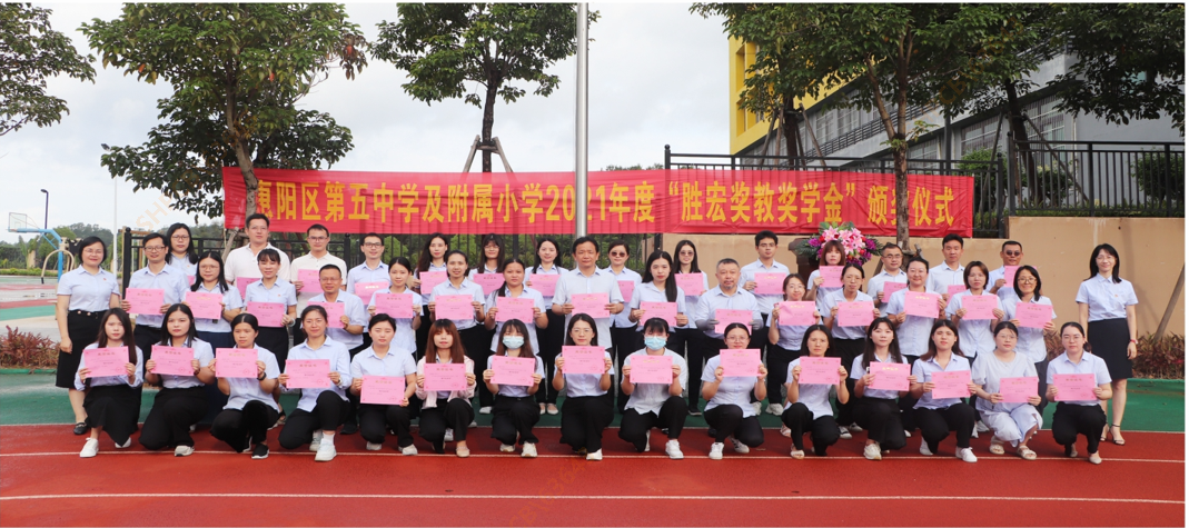 为传承尊师重教的中华民族优良传统,营造崇学尚学之风,助力惠阳区第五中学及附属小学(以下简称惠阳五中)提高教学水平,我司于2020年8月在惠阳五中设立“304cam永利奖教奖学金”,从2021年至2025年,连续五年每年捐赠人民币50万元,其中每年40万元用于奖教,10万元用于奖学,捐赠总额为250万元。2022年6月20日上午,为表彰先进,树立榜样,惠阳五中全体师生齐聚小学部田径运动场,隆重举行2021年度“304cam永利奖教奖学金”颁奖仪式,人力资源总监王耘代表304.cam永利科技参加了此次颁奖仪式。